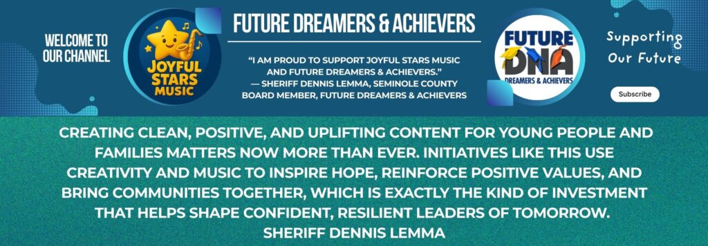Joyful Stars Music features positive, age-appropriate songs and animated videos designed to inspire creativity, character, and confidence in young people. Created in support of Future Dreamers & Achievers, the channel serves as a safe, engaging resource for schools, families, and community partners who value the arts as a tool for learning and development. We invite you to visit our YouTube channel and see how music can educate, uplift, and empower the next generation.